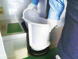 便器の汚れ落しには中性洗剤をご使用ください。酸性やアルカリ性のものでは微生物が死滅してしまいます。その際、使用する水はペットボトル(1.5L)を目安にご使用ください。 なお、和式タイプは便器が簡単に外せますので、外部に持ち出して清掃することも可能です。